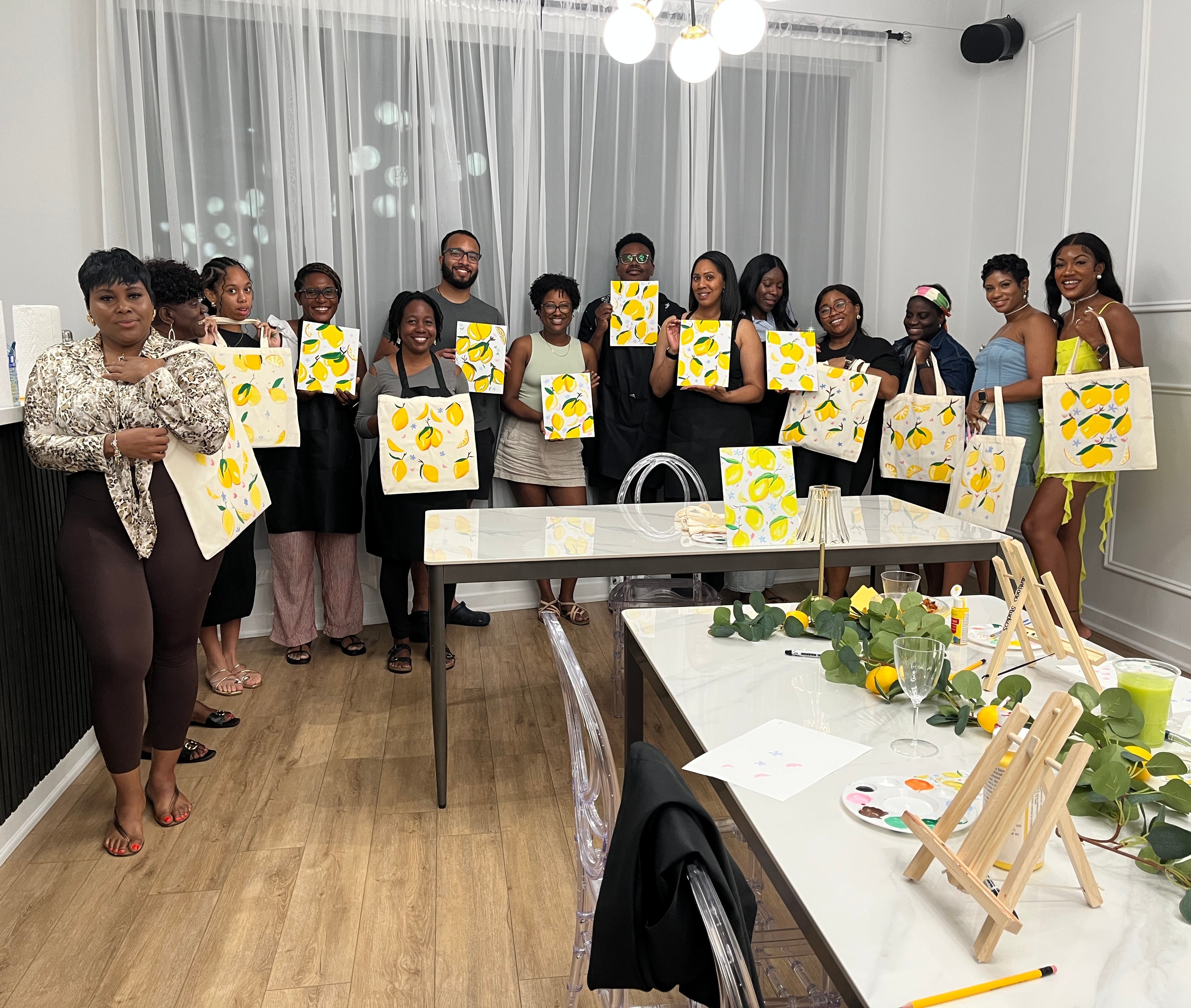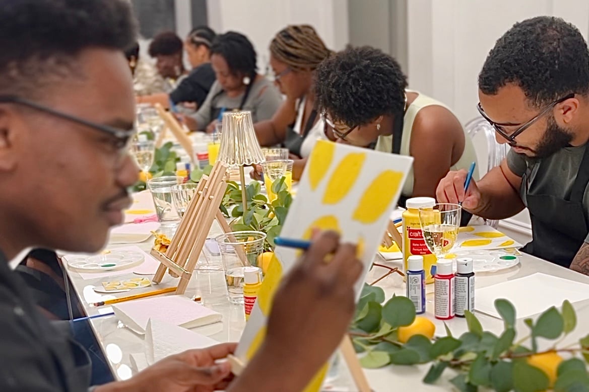 Artist Led & Beginner Friendly Guidance - Guests are guided step by step, by a professional artist that is trained to handle all levels of experience. This leaves guests inspired and proud of the work they create
