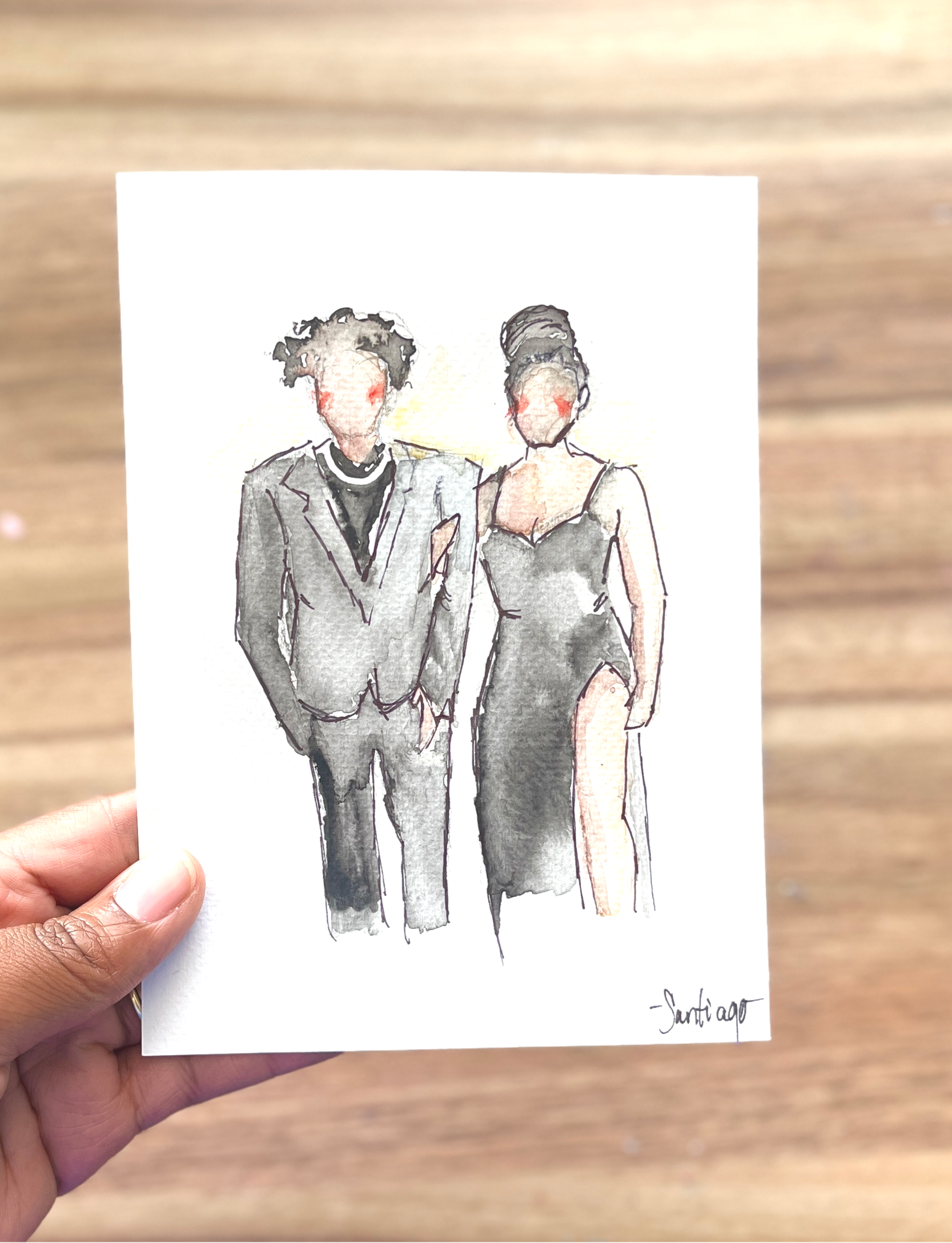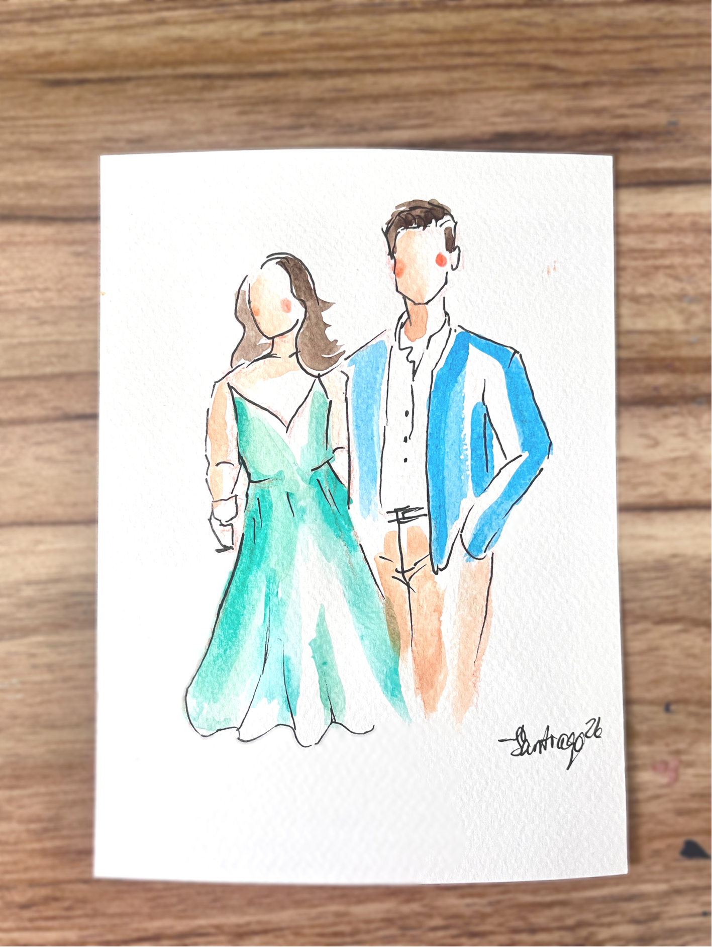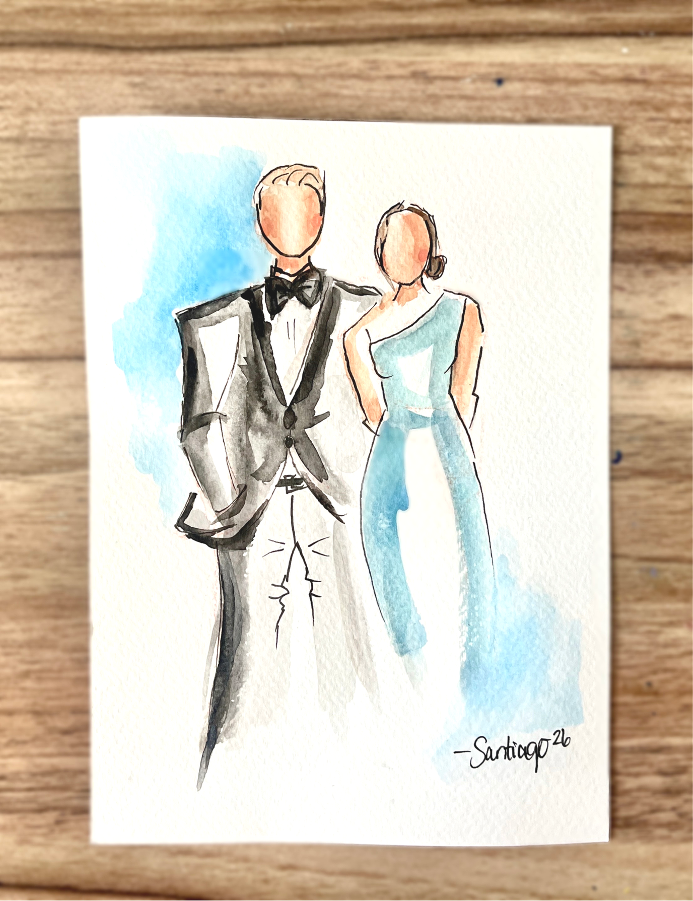 If you're looking for a unique way to celebrate your clients or guests, this interactive service adds a vibrant and unforgettable touch. This service is perfect for galas, custom commissions, weddings and major milestones. My work ranges from soft portraiture to expressive illustrative storytelling. Guests will be captivated as their poses come to life using watercolor paints.