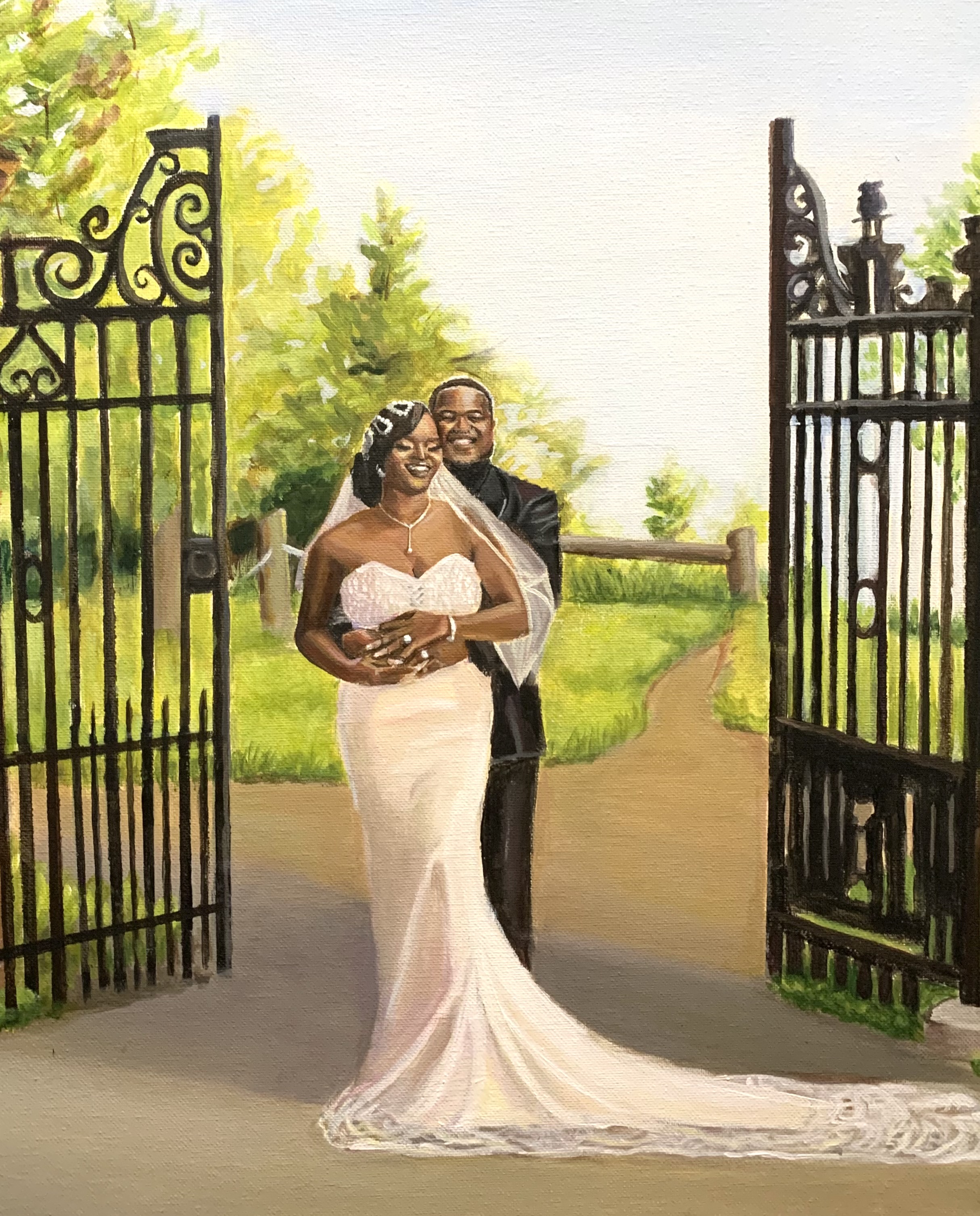Each painting is designed to honour the unique beauty of your special day, whether it’s your wedding, grand opening or a milestone celebration. My style with live paintings is realistic portraiture. Live painting creates entertainment for your guests and a timeless heirloom.