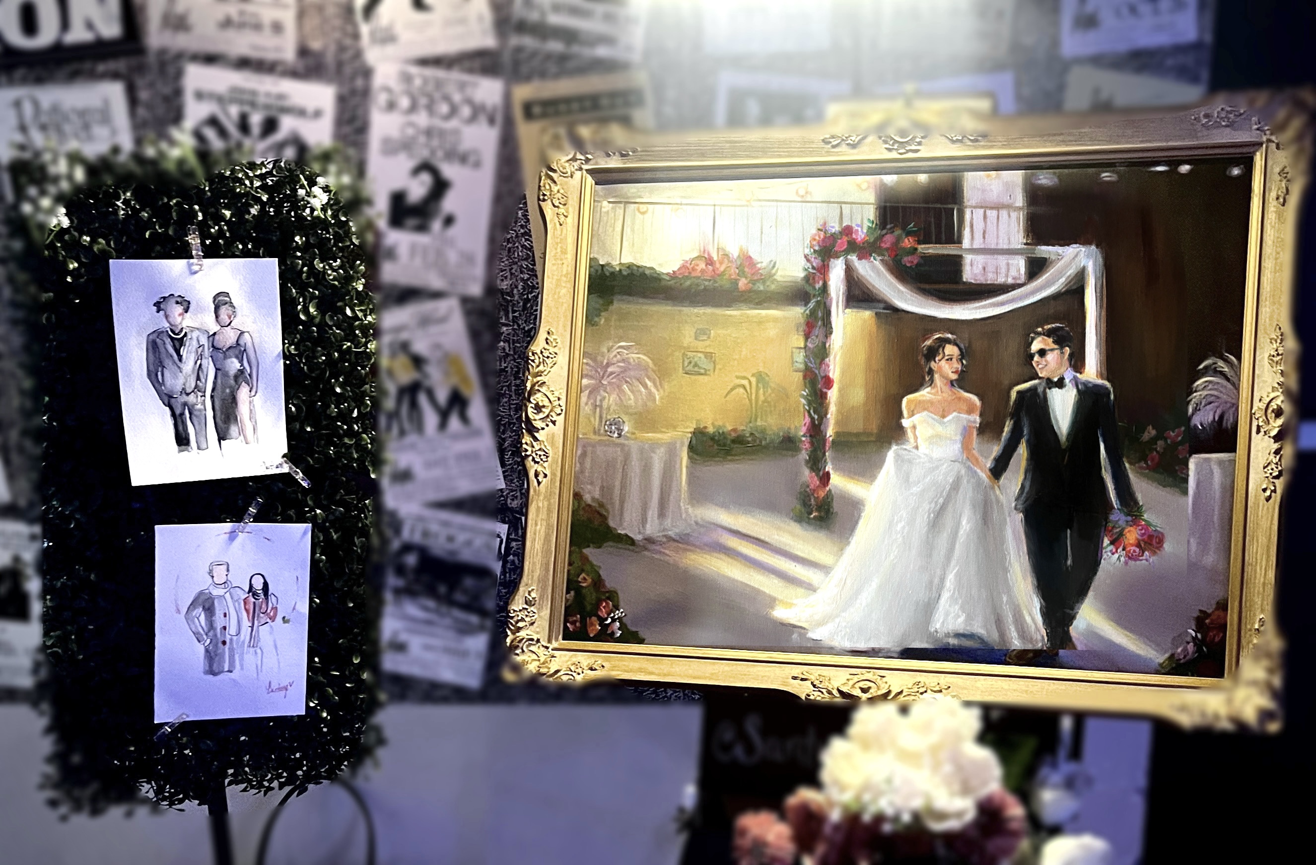 Live painting is a dynamic performance where an artist creates a piece in real time in front of an audience at events like weddings, galas, milestone events and fundraisers. We offer guest illustrations and live event painting